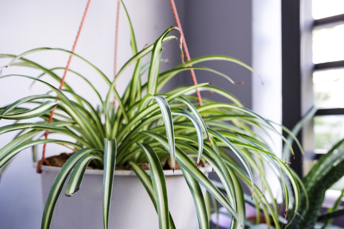 Planta simples, resistente e versátil, o clorofito é excelente para casas com pouco tempo para manutenção. Além de purificar o ar, se multiplica facilmente.
